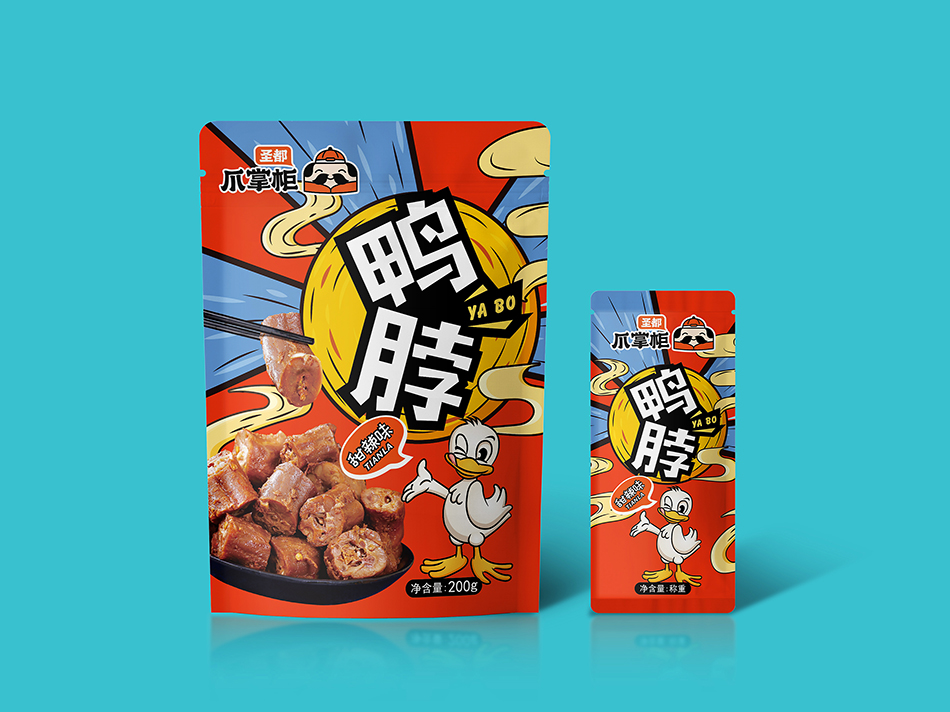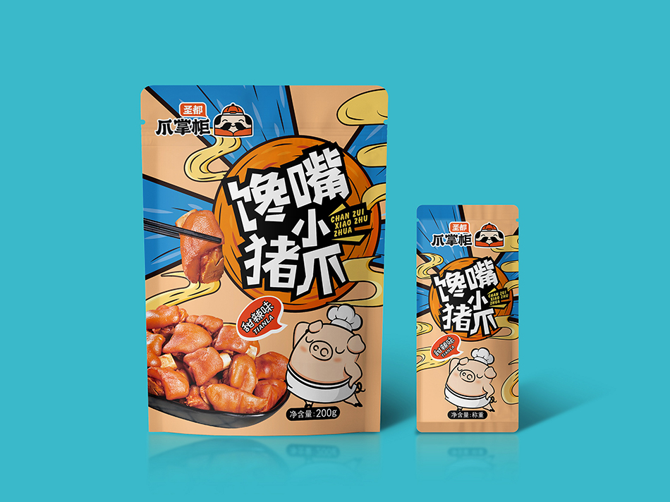 圣都食品是一家专业生产研发销售卤味熟食的连锁品牌。近30年的老品牌,6万多平方米的食品工厂,每日生产近200款熟食产品。全国600+门店和商超,通过强大的冷链运输体系。 2020年圣都熟食升级品牌“圣都爪掌柜”。主打爆品爪系列风靡全城。麻辣无骨爪系列,柠檬无骨爪系列,凤爪系列,全手工去骨工艺,完整保留筋肉,独家秘制配方,口感更带劲。 是也设计有幸受圣都食品负责人委托,为其设计新款产品包装。